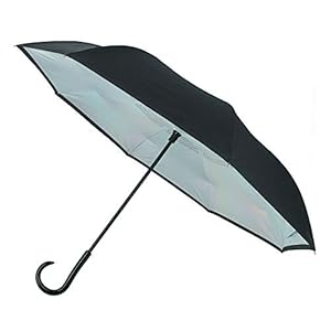 ShedRain Women’s UnbelievaBrella Reverse Closing Iridescent Stick Umbrella, Black