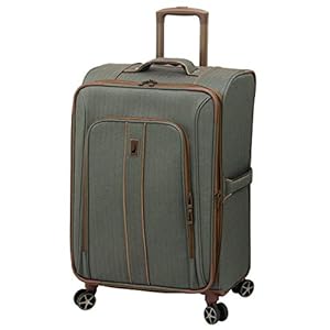 LONDON FOG Newcastle Softside Expandable Spinner Luggage, Slate Bronze, Checked-Medium 24-Inch