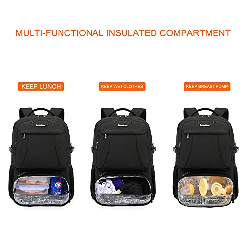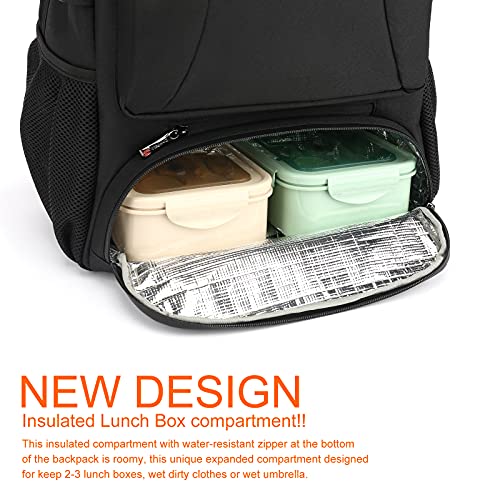 【Laptop backpack with Independent insulated compartment】 This insulated compartment with water-resistant zipper at the bottom of the backpack is roomy and functional, it is made of cleanable aluminum foil, this unique expanded compartment designed for keep 2-3 lunch boxes, drinks or wet dirty clothes. This design can expand it as a lunch backpack function, perfect for more occasions like: work, sport, hiking, fishing, beach time, camping, business trip, school life etc.