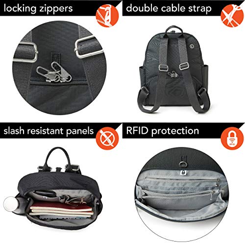 A travel backpack is a vacation must-have. This cute style has all the features you need to stay safe and organized. The anti-theft vacation backpack features slash resistant panels, a double-cable cut-resistant strap, locking zippers, and RFID-protection.