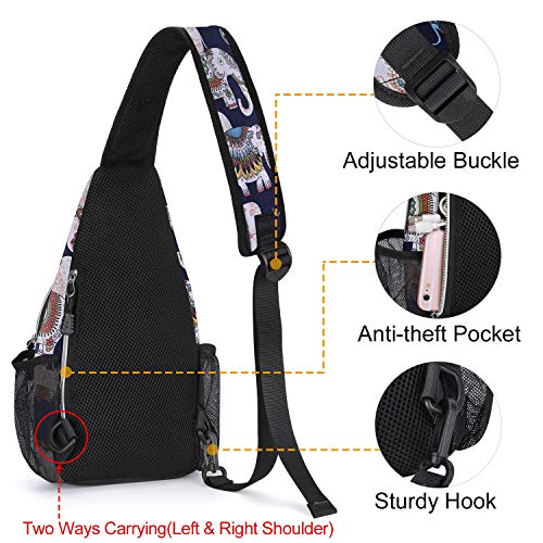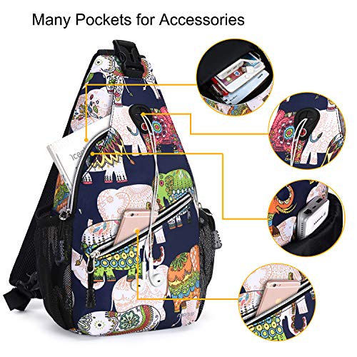 MOSISO Mini Sling Backpack,Small Hiking Daypack Pattern Travel Outdoor Sports Bag, Elephant