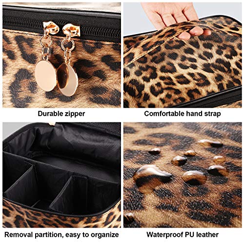 3 Pieces Leopard Print Cosmetic Bag Set Cheetah Toiletry Travel Makeup Bag Portable Makeup Pouch Brush Organizer Purse…