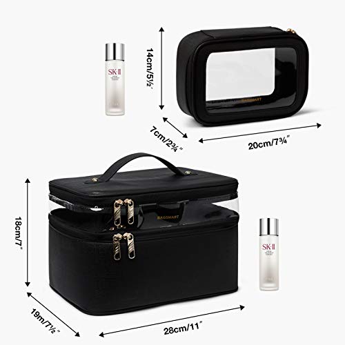 BAGSMART Makeup Bag Set, Roomy Cosmetic Case Plus a TSA Approved Transparent Clear Toiletry Bag,Portable Artist Storage…