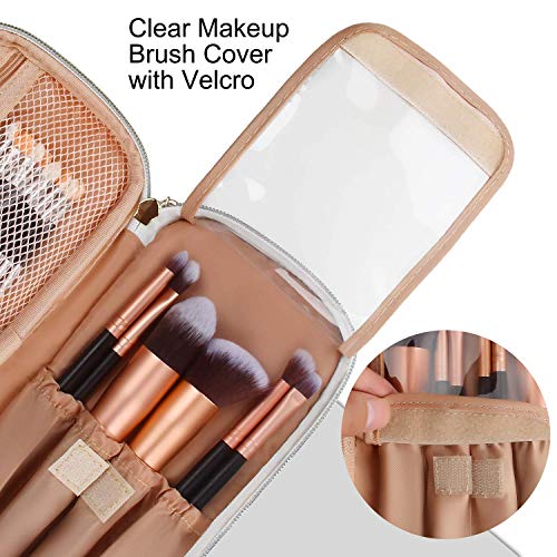 Adjustable Divider and Transparent Brush Cover: This makeup bag has 4 brush slots with transparent waterproof brush cover and a removable divider. The brush cover keeps the makeup brush clean and is also very easy to clean. The removable partition allows you to better organize your cosmetics.