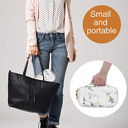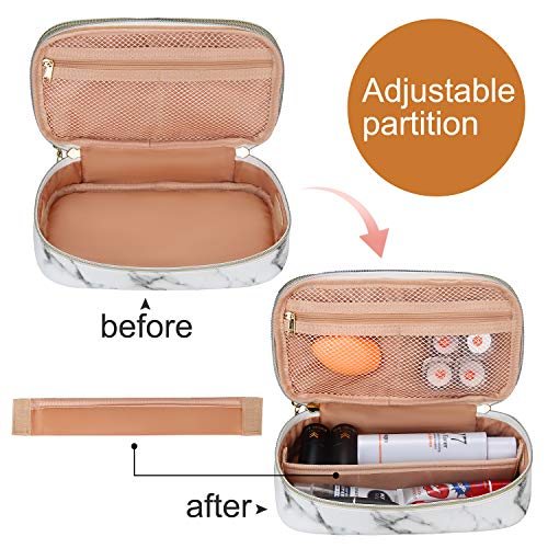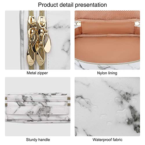 Great Gift: The exterior pattern of makeup bag is a very popular white marble pattern, and the design is professional, sturdy and durable.This makeup bag very suitable for storing daily cosmetics, can be easily taken anywhere. It is the perfect birthday and Christmas gift for family, friends and lovers.