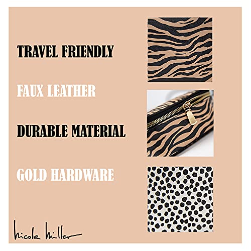 Whether you are leaving for a short weekend or planning a long vacation, a travel cosmetic bag is a packing essential every woman needs. Nicole Miller’s animal print makeup bag set allows you to stay organized both at home and on the go. This bag is convenient and compact enough to fit in your suitcase, but still has plenty of room to hold all your essentials and toiletries. This set is a perfect makeup organizer with its many storage options. Use all 3 bags separately or use the large clear bag to hold the smaller animal print bags for easier access during travel. From makeup to hair and skin care essentials, we know there are many products that a woman needs while at home or traveling. Our toiletry case makes packing a whole lot simpler allowing you to travel with a clear mind and enjoy every minute of your adventure knowing all your beauty essentials are safely packed. Pack your lotions, brushes, and bottles in this large zip around bag that allows you easy and stress-free access. The super convenient handles allow you to hang your bag on a hook when there is no counter space so you can travel with ease. Match this bag with Nicole Miller’s coordinating cosmetic bags to create a unique set of bags that fits all your home and travel needs. Nicole Miller makeup bag- the perfect bag for organizing the woman on the go.