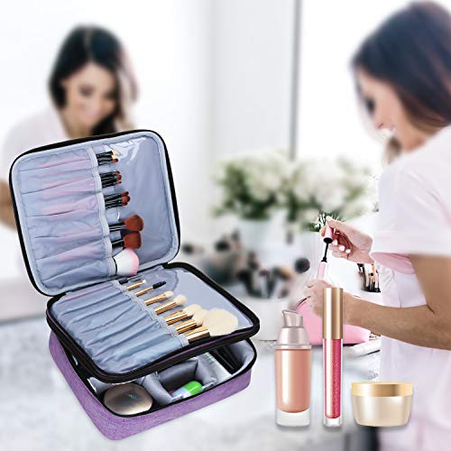 Teamoy Travel Makeup Brushes Bag(up to 10″), Professional Makeup Train Case for Makeup Brushes and cosmetics, Portable and Multifunctional-Large, Purple (No Accessories Included)