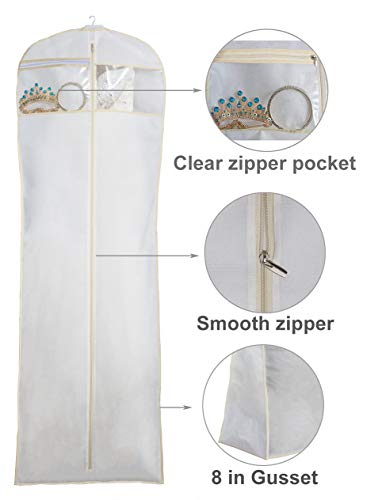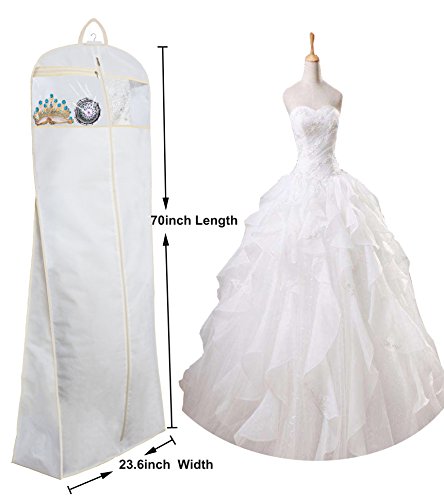 MISSLO 70″ Bridal Wedding Gown Dress Garment Bag with Accessories Pouch Large Travel Garment Cover 8″ Gusset (White)