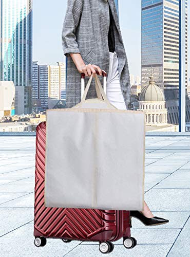 Smooth sturdy 5# zippers, zip and unzip easily and Two strong handles behind the back, you can fold the garment bag and hook on to the hanger, perfect for transporting or hanging in closet while traveling;