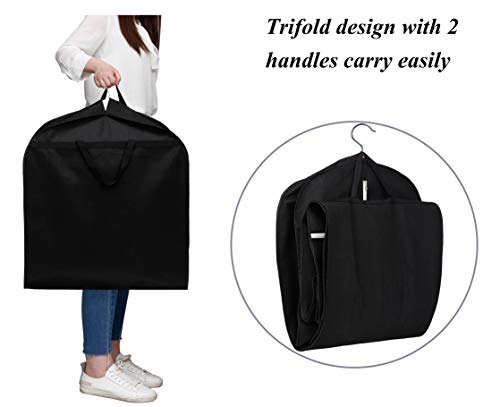 Trifold wardrobe bag has handles at both ends so it can be folded and easy to carry without dragging your garments on the ground; lightweight wedding storage bag perfect for traveling, camping, gym, RV, cruises, road trips and hanging in the back of your closet, garage closet and attic.