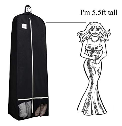 72 inches garment bags long enought for maxi dresses, bridesmaid dresses, long costume dresses, grooms tux and tuxedo; 15 inches gusseted gown garment bag roomy enough for formal gowns, puffy skirts, ballgown wedding dress and mermaid dress, although it has a long train also can keep the clothes do not get crushed & wrinkled.