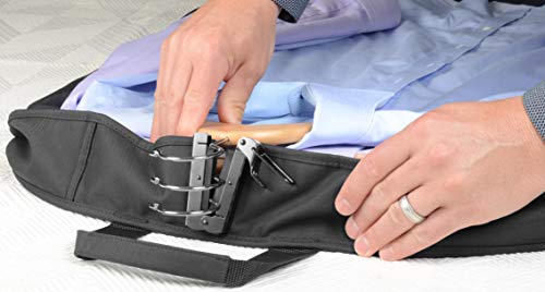 HOLDS MULTIPLE SUITS AND DRESSES FOR QUICK & EASY PACKING: WallyLock hanger clamp holds up to 6 hangers of any kind, and secures them at the top of the bag to keep clothes neat and wrinkle-free; No folding, rolling, or special packing skills required; Just grab from your closet and place right into your garment bag – ready for travel