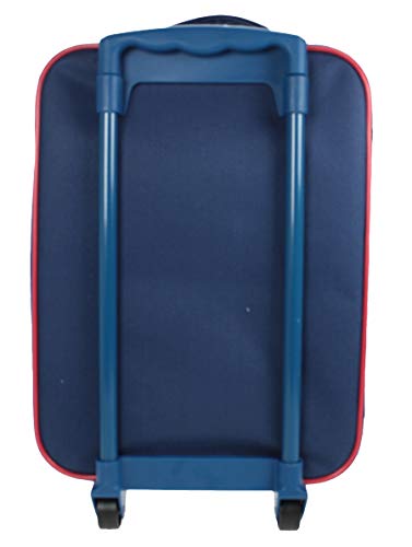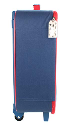 This smart Paddington Bear London themed wheeled trolley bag is blue with red trim, and features ???????. Ideal for short breaks, holidays, sleepovers and school trips when your little ones want a case of their very own. Extendable handle allows the bag to be easily pulled along. Zip fastening for easy access and security. The bag is made from polyester which is not only durable but can be wiped clean. Not suitable for children under 36 months. Approx Size: 45 x 30 x 16 cm including wheels + handle [actual bag approx 41 x 30 x 14cm].