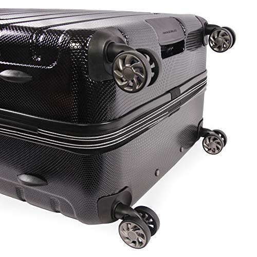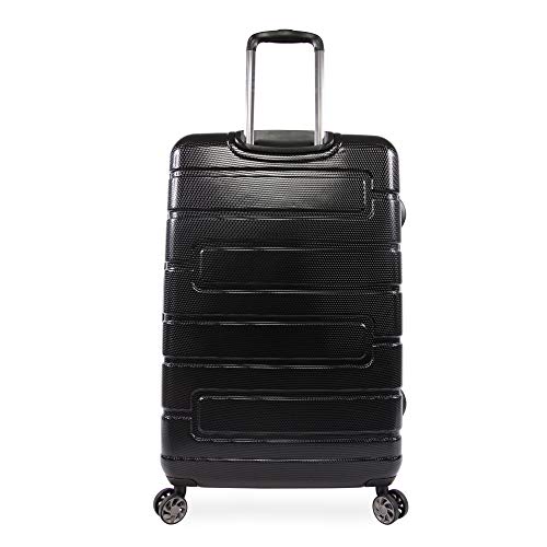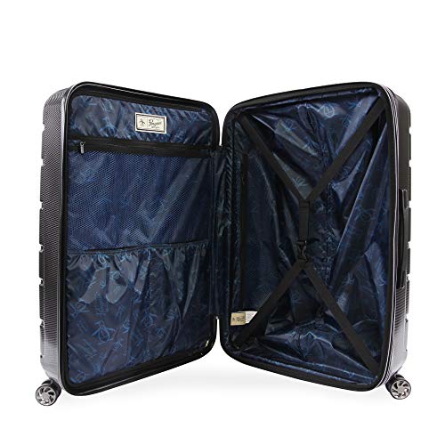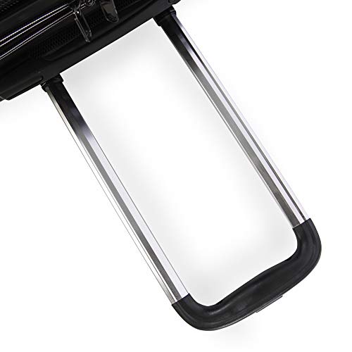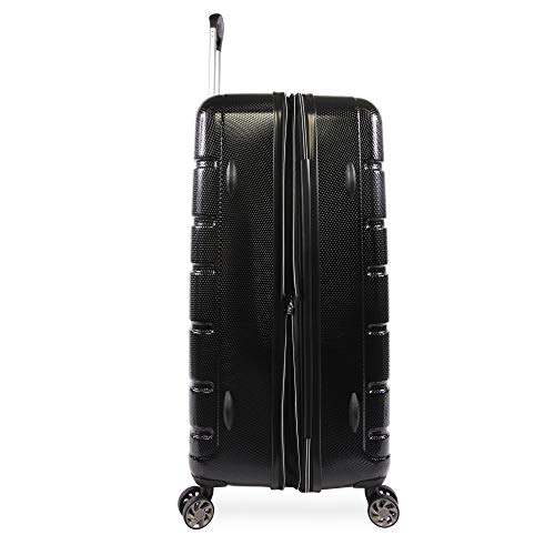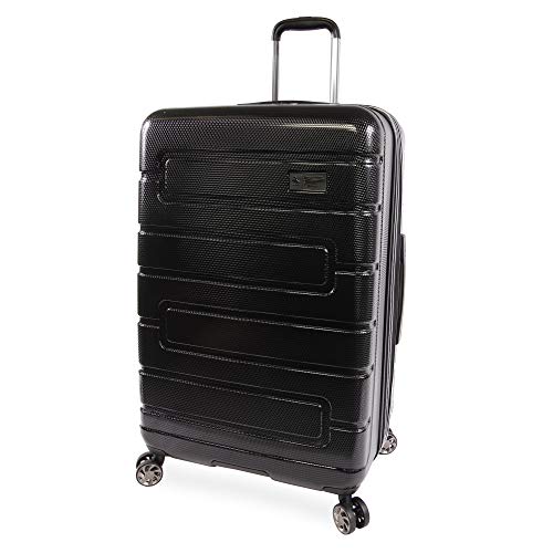 This hard side exterior creates a sophisticated yet fun design. The 29″ crimson style luggage is constructed of lightweight and durable material with a rigid texture shell, a aluminum trolley handle, and double spinner wheels for easy transport. This carry-on expands to offer 25% more packing capacity and has a fully lined interior with shoe pockets, tie down straps, and a zippered pocket.