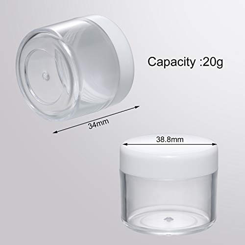 20 Pieces round pot jars plastic cosmetic containers set with white lid for liquid creams sample, 20 gram