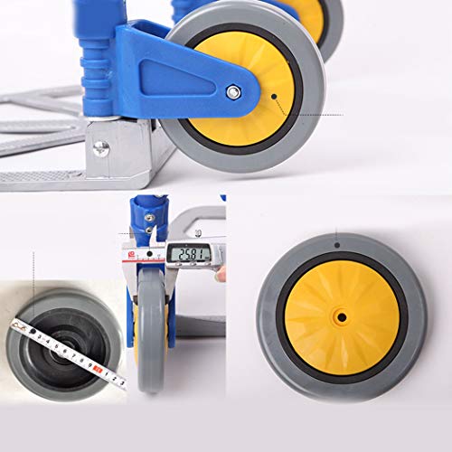 - Built with durable, rust-proof aluminum that lasts. Solid rubber wheels travel well on any solid surface as well as low carpets. Tough, grippy aluminum base keeps cargo in place. So pick up this cart before your next move, trade show, or big home project. You’ll be glad you did.