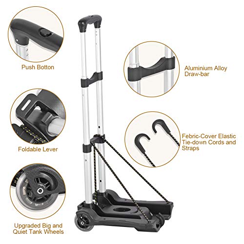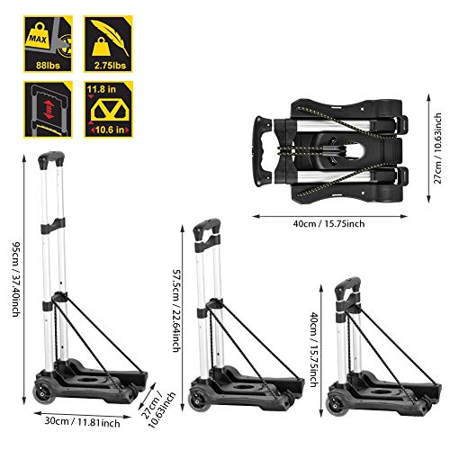 Hivexagon Folding Luggage Cart, Heavy Duty Travel Trolley 40kg/88lbs Load Capacity Lightweight & Durable for Luggage…
