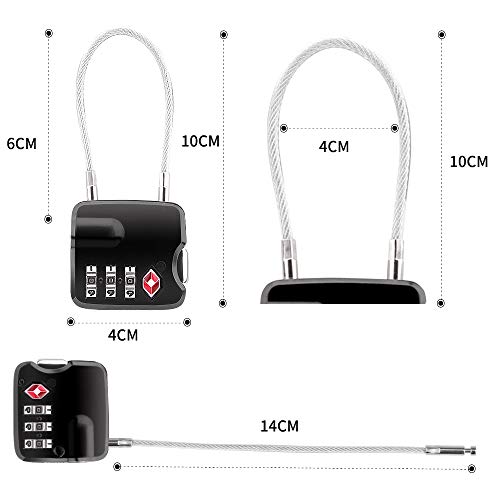 SHOWKOO TSA Approved Luggage Locks, Alloy Cable Lock and 3 Digit Combination Resettable Padlocks for Travel Suitcase…