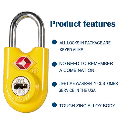 Airport theft may be more common than you think. Many airports see thousands, if not tens of thousands, of travelers a day. These crowded conditions make theft easier than in other settings. Add to this the fact that many passengers travel with expensive electronics, jewelry, etc. and it’s no wonder that thieves target airports. Make sure your valuables are protected with a Sure Lock TSA travel lock. Airport handling is tough, but these luggage locks are tougher. Cheap plastic lock bodies and flimsy shackles just aren’t up to the challenge of baggage handling. That is why we use a 100% zinc alloy body for our locks with a high carbon hardened steel shackle. The internal mechanisms on a key lock are quite a bit simpler than that of a combination lock. Because of this, we can offer these locks at a much lower price while keeping the quality of the lock materials high. Enjoy a reliable travel lock at a great price with Sure Lock. Unique keyhole location for ease of use. By placing the keyhole on the front of the lock, we’ve made it easier than ever to quickly unlock your baggage. No more turning the lock over and fumbling for the keyhole. It’s not just a travel lock. There’s no need to just store these locks in a dusty cabinet after your trip is over. The shackle will fit a wide variety of items including lockers, backpacks, briefcases, gates, etc. Use them at the gym, work, home or school. We stand by our product. We feel confident in the quality of our product and are proud to offer a lifetime warranty on this product. If you have any problems with your Sure Lock luggage locks, just let us know and we will get it right. This is the smallest and lightest TSA key lock in the market. This key lock is a strong, safe yet small lock. Keyed Alike: Same key opens all locks.