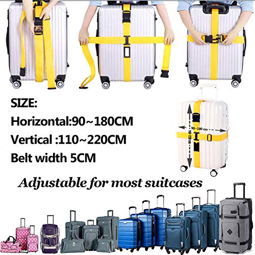②Strap Size – Belt horizontal length: 90-180cm;vertical length: 110-220cm; Belt width: 5cm; Universal luggage strap fit for 20″-34″ suitcase.