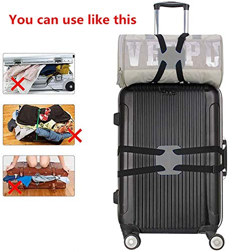 Buckle Storage And Cross Design:The Luggage Bungee is adjustable and elastic strap, So it stretches easily around larger bags or you can tighten it to keep your hand luggage to be strapped securely to the handles of your wheeled suitcase, Without twisting or slipping.sufficient length can be adjusted for your second bags or box.
