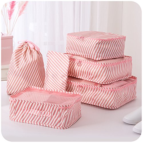 Adwaita 6 Set Packing Cubes, Travel Luggage Packing Organizers (Pink Stripe)