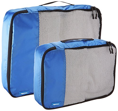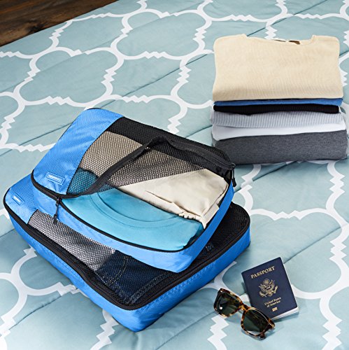 Amazon Basics 4 Piece Packing Travel Organizer Cubes Set – 2 Medium and 2 Large, Blue