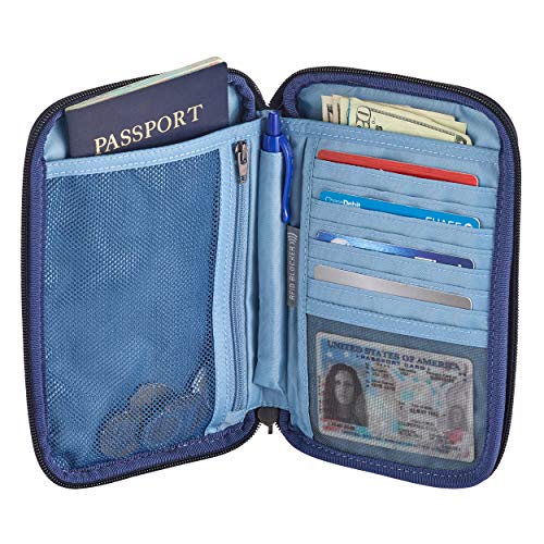 ORGANIZED TRAVEL: When your stuff is organized, life is easier. This wristlet wallet helps you organize your passport, up to 8 credit cards and more. Two separate bill-fold pocket holds currency.