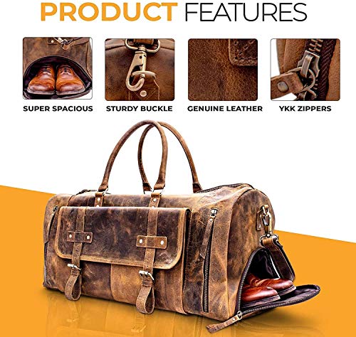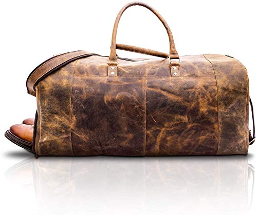 KomalC Leather Travel Duffel Bags for Men and Women Full Grain Leather Overnight Weekend Leather Bags Sports Gym Duffle