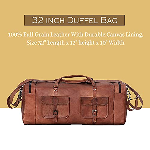 100% Full Grain Leather With Durable Canvas Lining, Size 32″ Length x 12″ height x 10″ Width
