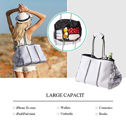 Waterproof & Durable: Made from high quality and lightweight waterproof neoprene and polyester material, this tote bag is easy to clean and quick-dry. 2 inner Pockets Zipper is very strong and long-lasting, keeps your things secure.
