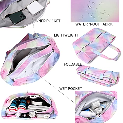 Beach Pool Bags Tote for Women Ladies Large Gym Tote Carry On Bag With Wet Compartment for Weekender Travel Waterproof