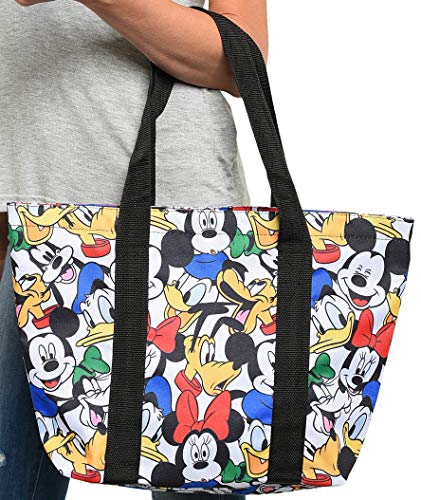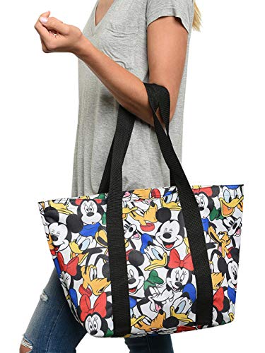 Disney travel tote made of polyester canvas – officially licensed. Print with Mickey Mouse, Minnie Mouse, Donald Duck, Goofy and Pluto. Top zip closure, inner zip pocket and double shoulder straps. Tote bag is sized for the Amusement Parks, beach, travel, shopping and everyday use.