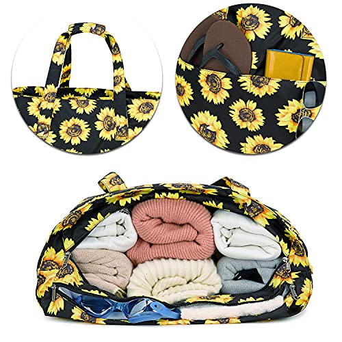 This beach tote bag : with its vibrant bright sunflower design, this oversized beach bag is great for family beach travelling, pool party, weekend picnic and more! Perfect as a swim tote, cruise bag, travel bag, sports bag, vacation bag, overnight bag, pool bag, gym bag, grocery bag, or even a carry-on luggage handbag for the flight. You’ll receive a lot of compliments by carrying this fashion beach bag at the seaside..