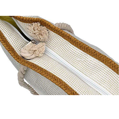 MATERIAL – 100% canvas, handmade straw binding, waterproof lining, and a sturdy cotton rope handle, with a top zipper closure.