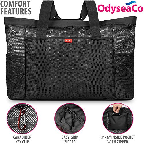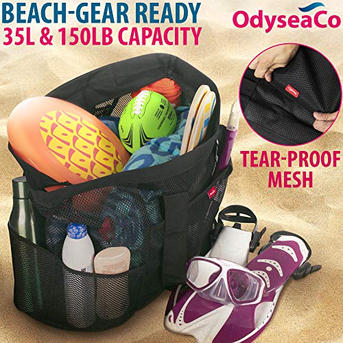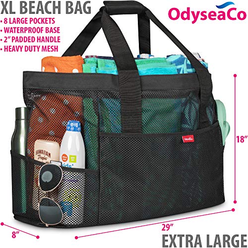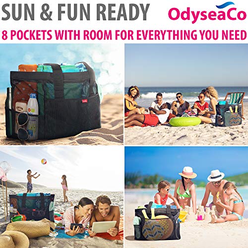 Odyseaco Extra Large Beach Bag Mesh – Waterproof & Sandproof Large Beach Tote and Pool Bag with Pockets