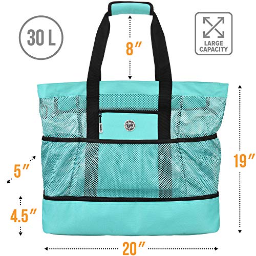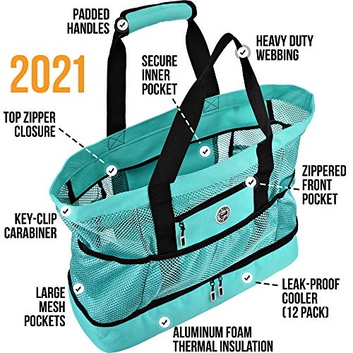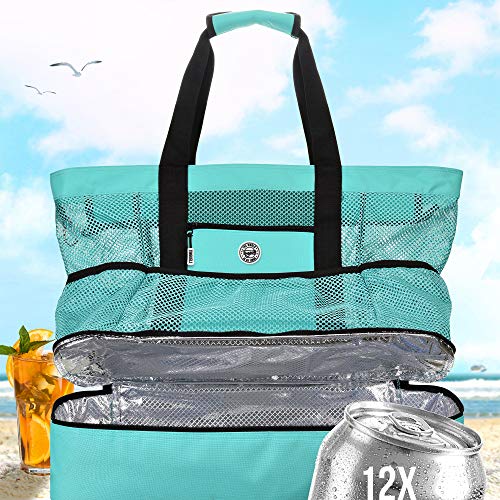 EXTRA LARGE BEACH BAG — 20″x19″x5″ mesh beach bag with top zipper and cooler 🏖️