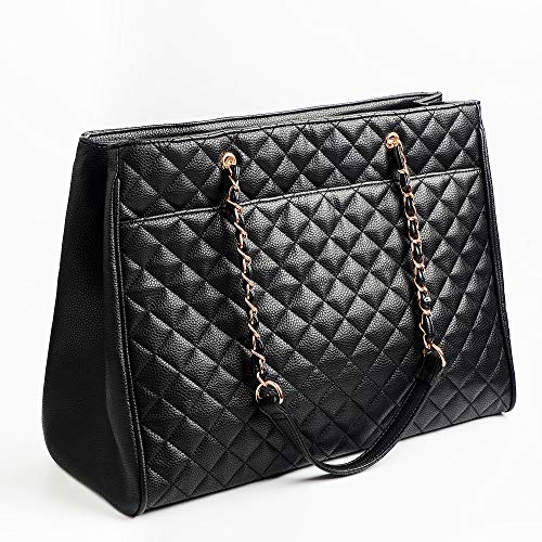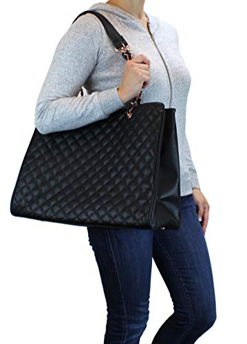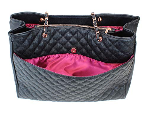 Finally, a cute handbag that fits everything! We developed this purse for those specific times when you need to carry more than normal. We made sure there are plenty of pockets to stuff in everything you need when on-the-go. Not only did we want this bag to be functional, we wanted it to be fashionable. The rose gold hardware and shiny satin interior lining give this bag an extra unique glam style. It is also light-weight to ensure your shoulder isn’t killing you after you’ve stuffed it with stuff. This bag makes a great gift for your wife, girlfriends, bridesmaids, moms, daughters, friends and more.