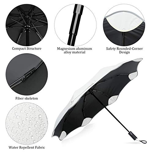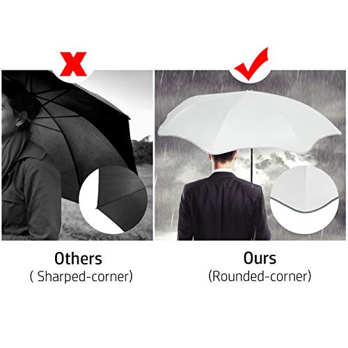 【Safety Rounded-Corner Design】: This rounded-corner automatic umbrella adopts arched edging process and a 360°anti-poke rounded design to avoid people from accidentally stabbing. The rounded corners are safer for both adults and children and are suitable for family use.