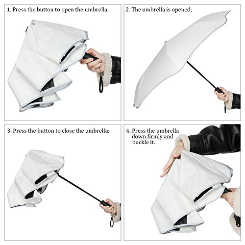 【Automatic Open Close Compact Travel Umbrella】: Just push the button once to automatically open and press again to instantly fold the canopy closed. You don’ t need to wait another second to open the umbrella when you get out of your car in the rain, especially in heavy rainfall, even when your hands are full of things.