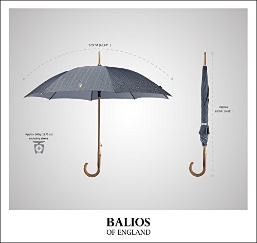 ★Design: Herringbone ★ONE OF THE MOST CLASSIC ENGLISH DESIGNS + PURE AESTHETIC BEAUTY★–Based in Berkshire England, Balios is all about authentic quality and contemporary aesthetic beauty. Using the finest materials, this luxury stick umbrella with genuine chestnut wood crook handle is the perfect accessory for any elegant men who would like to maintain their sartorial standards during drizzly days.