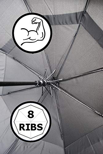2) A STRONG CANOPY THAT’S BIG ENOUGH TO COVER YOU – This umbrella has a VENTED DOUBLE CANOPY designed to regulate pressure. Two overlapping canopy layers have vents which allow gusts of wind to pass through the umbrella reducing the risk of inversion. We only use HIGH QUALITY, WATERPROOF FABRICS that are strong, lightweight and flexible so they work in harmony with the frame. When open the canopy has a generous 55 inch arc and a 48 inch diameter.