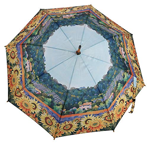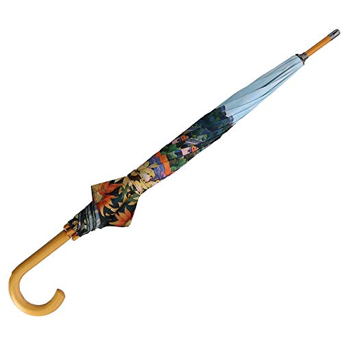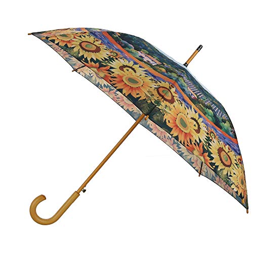 This beautiful Marie Gabrielle painting inspired umbrella is a great way to keep yourself dry when caught in the rain. The art-inspired sunflowers add a pop of color and the wooden handle gives it a rustic look.