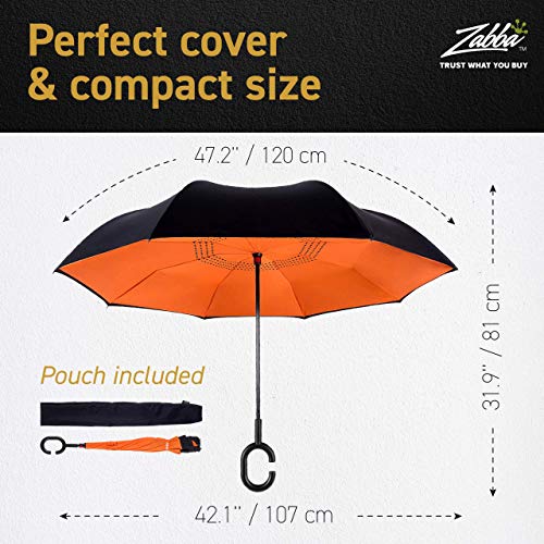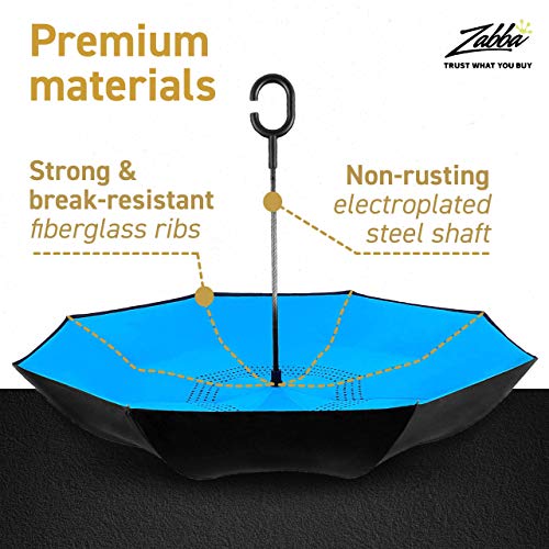 EEZ-Y Reverse Umbrella – Large, Inverted Umbrellas for Rain w/C-Shaped Non-Rust Handle for Men & Women, Windproof…