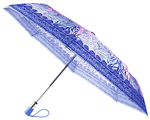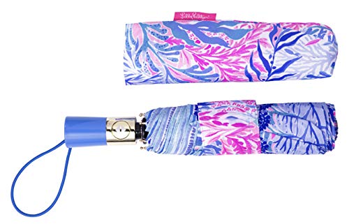 Lilly Pulitzer Compact Travel Umbrella Printed with the multicolored Lilly Pulitzer pattern, Totally Blossom Includes a matching pouch for easy storage Gold logo snap keeps the umbrella neatly wrapped up when the sun comes out again Bubble design keeps you dry with max coverage It’s always sunny somewhere, even when it’s raining! Brighten up rainy days with this super chic Lilly rain umbrella. Your favorite pattern printed on a clear bubble umbrella keeps you dry, and a gold logo snap keeps it neatly wrapped up when the sun comes out again. This cute umbrella is featured in the multicolored print, Totally Blossom. Portable umbrella measures 42 inches (106.7 cm) wide and has a handle that is comfortable to hold. Small umbrella makes the perfect birthday or graduation treat.
