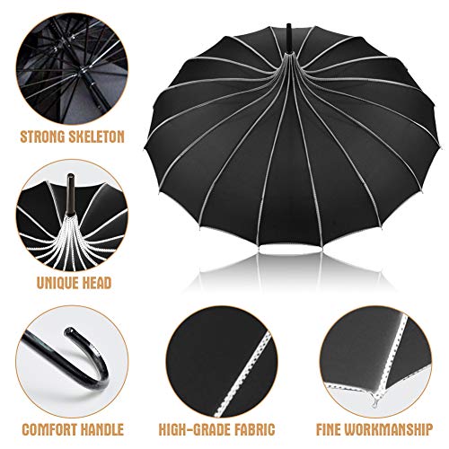 ☔【ELEGANT&CLASSICAL DESIGN】:This classical umbrella features a peaked pagoda shape in old fashionable,design with a leather curved handle,full of classical elegance and romanticism,the best choice for your unique wedding umbrella for bride and groom.