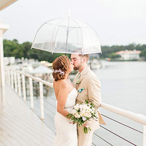 WASING 10 Pack 46 Inch Clear Bubble Umbrellas Wedding Style Large Canopy Transparent Stick Umbrellas Auto Open Windproof…