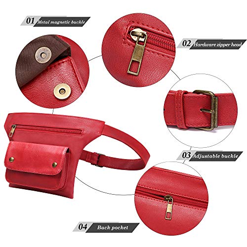 【CAPACITY & MATERIAL】 This waist pack is made of premium synthetic leather, comfortable and soft to the touch. Enough capacity for daily use, such as cellphone, cosmetic, wallet, lipstick, zipper pocket for coins, keys, cash, cards, etc