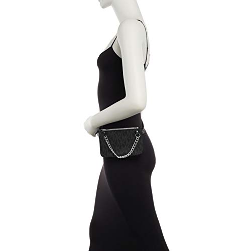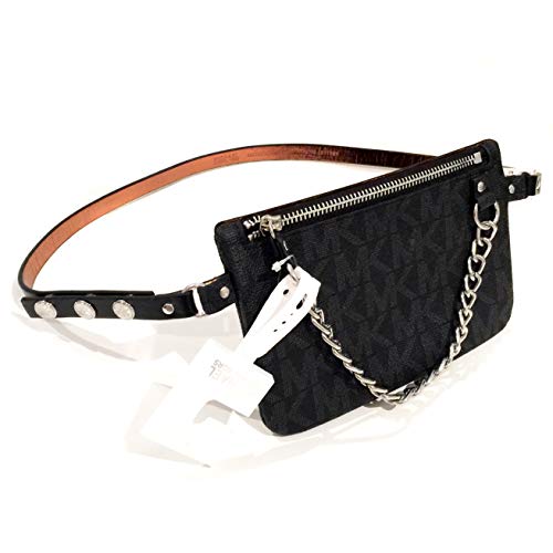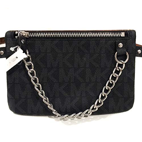 Michael Kors MK Fanny Pack Belt With Pull Chain,Black/Grey, Small