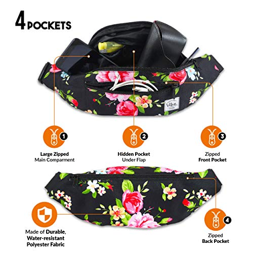 Vibe Festival Gear Fanny Pack for Men Women – Many Prints – Black Holographic Silver Gold Cute Waist Bag for Festival…